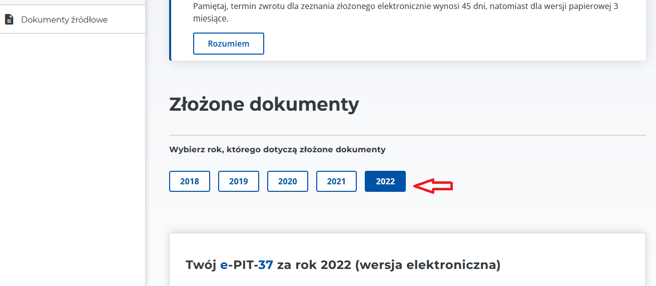- Wybierz rok, którego dotyczy PIT, który masz zamiar pobrać