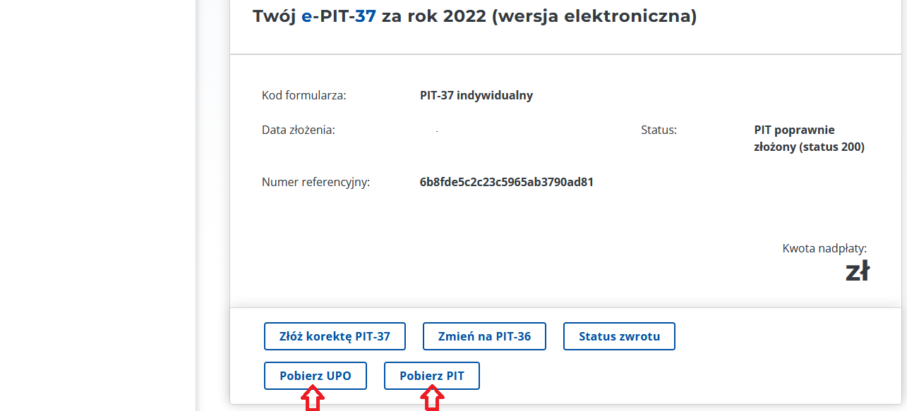 - Przejdź niżej i pobierz swój PIT oraz UPO