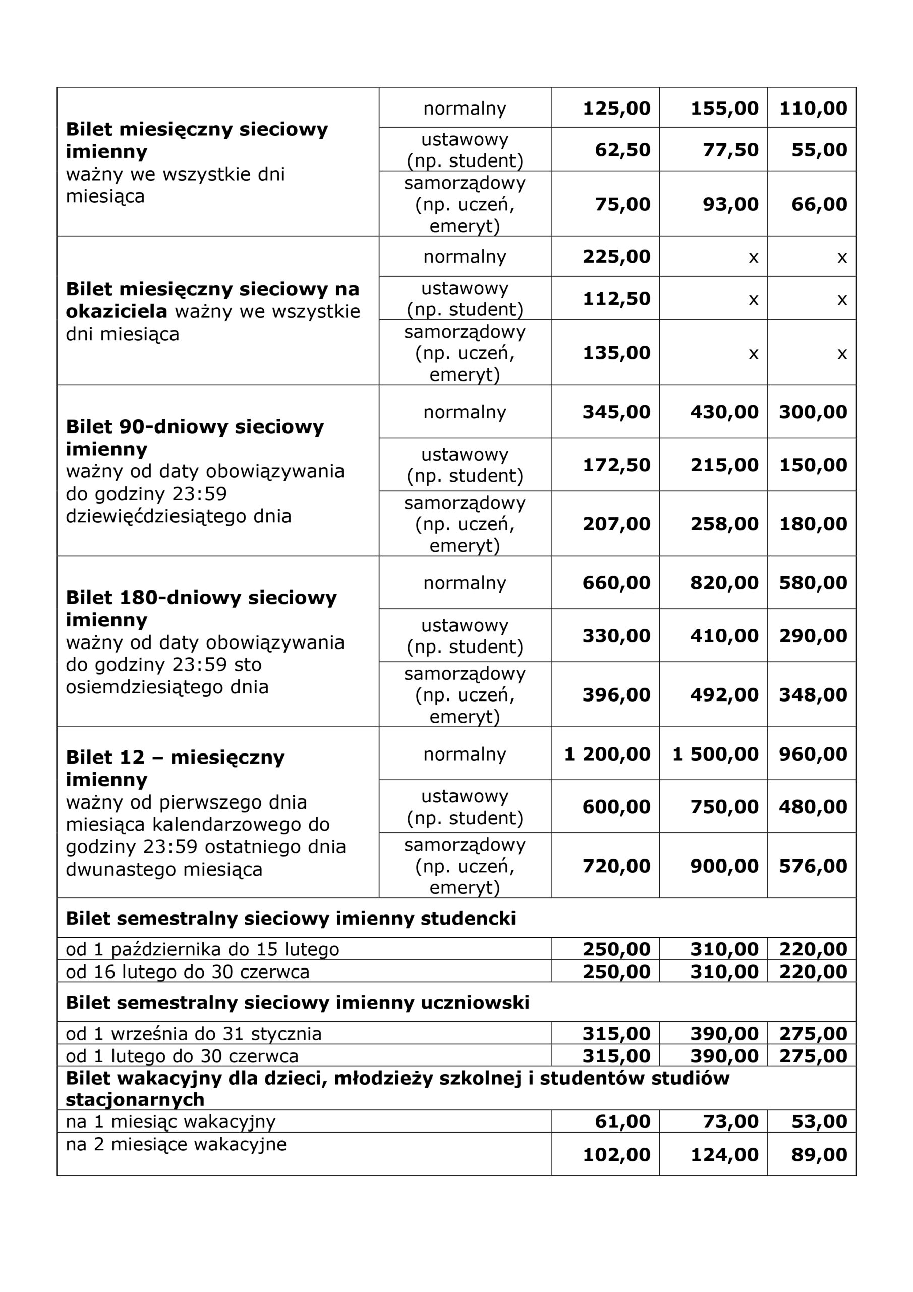 BiletyCennik biletów Pobierz tutajUlgiStrefa A i B ZOBACZ ROZKŁAD LINIIAlternatywne formy zakupu biletówBilety Elektroniczne
